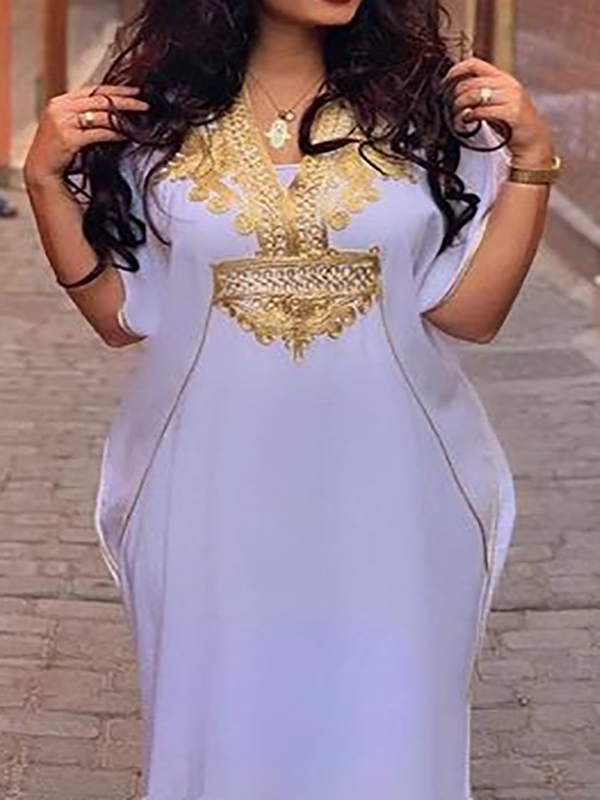Indulge in Bohemian sophistication with the captivating Kaftan Dress 206. This Moroccan-inspired garment features exquisite embroidery and a trendy design, perfect for everyday attire. Embrace your unique style by styling it with jeans or trousers for a bohemian chic ensemble. Elevate your look with this distinct kaftan that radiates individuality and allure.