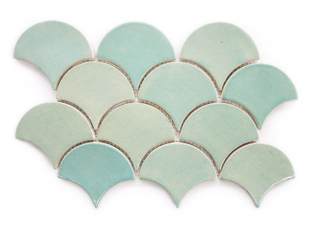 Enhance your living space with our captivating Medium Moroccan Fish Scales in Lark Green. These premium scallop tiles boast a lustrous glazed finish, making them ideal for embellishing walls, floors, kitchens, and backsplashes both indoors and outdoors. With a plethora of color options to choose from and exceptional durability, introduce a hint of aquatic sophistication to any area.