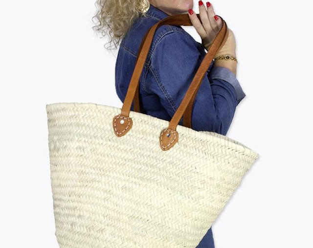 Embrace sustainable living with our handwoven French market basket, a timeless eco-chic piece crafted by Moroccan artisans. Featuring chic brown leather straps, this basket is perfect for beach outings, shopping excursions, stylish storage solutions, or even as a fashionable laundry hamper. Customizable in size to suit your needs, this versatile accessory seamlessly complements a variety of styles. Elevate your everyday essentials with this ethically crafted basket.