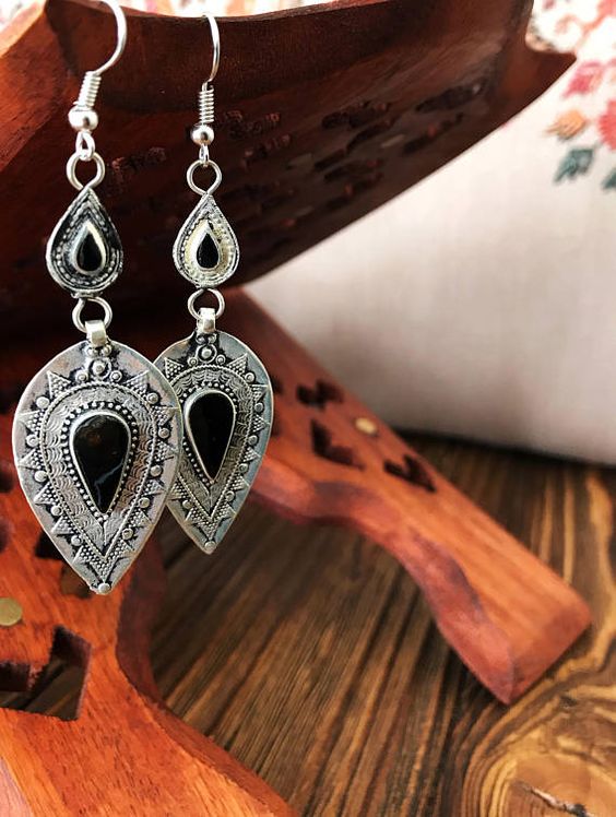 Enhance your look with a touch of sophistication with these exquisite Moroccan-inspired earrings. Handcrafted by skilled artisans, each piece boasts intricate geometric designs that beautifully blend modern and ethnic aesthetics. Embrace the meticulous craftsmanship and unique heritage of these Tuareg Berber earrings, perfect for adding a hint of elegance to any outfit. Step into a world of elegance and tradition with these Moroccan Tuareg Berber earrings featuring intricate geometric designs and meticulously handcrafted by skilled artisans. The fusion of modern and ethnic styles creates a versatile accessory that exudes sophistication. These earrings are a true work of art, showcasing precision and creativity in every detail. Elevate your style and pay homage to cultural heritage with these exceptional earrings.