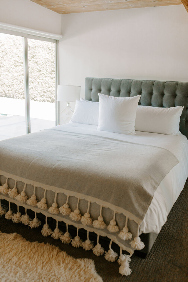 Grey Moroccan Pom Pom Blanket – Handcrafted 100% Cotton Blanket