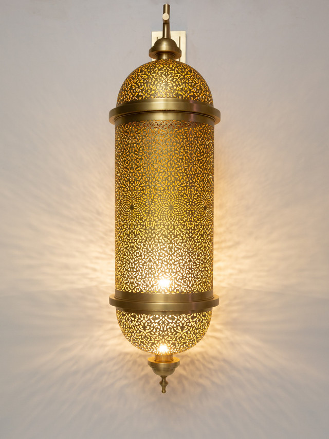Illuminate your space with the exquisite Cylinder-shaped Moroccan Pendant Lamp. Handcrafted to a beautiful Moroccan design, this high-quality and durable pendant lamp adds a vintage charm to both indoor and outdoor settings. Versatile and available in various shapes, sizes, and colors, this lamp showcases centuries of artisanal expertise. Its flawless polished finish and intricate hand-made designs make it perfect for all ceilings and electrical installations. Elevate your home decor with this captivating piece that exudes timeless elegance. Discover the beauty of Pendant Lamps today!