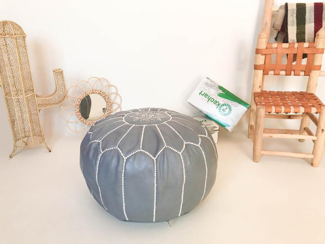 Elevate your living space with our exquisite Leather Poufs, handcrafted in Morocco. Crafted from genuine leather, these poufs offer a cozy seating option and warm ambiance. Add a touch of Moroccan charm to any room seamlessly with its custom dimensions and easy filling zipper feature. Experience the blend of traditional craftsmanship and modern elegance with these high-quality poufs. Enhance your decor with the handmade Gray Embroidered Moroccan leather pouf. Crafted with care in Marrakech, this high-quality genuine leather pouf offers a touch of warmth and coziness. Perfect for comfortable low seating, its customizable dimensions and zipper feature make it a practical and stylish addition to any room. Enjoy the unique blend of traditional craftsmanship and modern elegance. Elevate your decor with this versatile and charming leather pouf from Morocco.