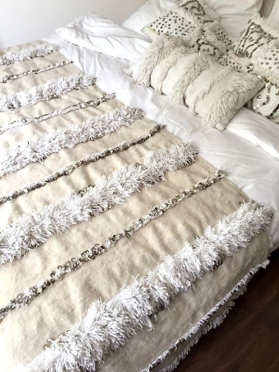 Introducing the Handloomed Moroccan Wedding Blanket, a luxurious masterpiece handcrafted by skilled artisans in Morocco. This exquisite blanket exudes elegance and charm with its Bohemian-inspired design, making it a versatile addition to any space. Whether used as a bedspread, sofa throw, or picnic rug, this blanket is the perfect way to cozy up on chilly winter nights. The customizable dimensions add to its versatility, allowing it to be used as a snug lap blanket or a stunning decorative accent. Made from 100% handwoven cotton, this blanket combines timeless style with unparalleled comfort, showcasing the cultural richness of Morocco. Elevate your surroundings with this exceptional and sophisticated Moroccan Blanket, priced at a remarkable value and adorned with special features to enhance your experience.