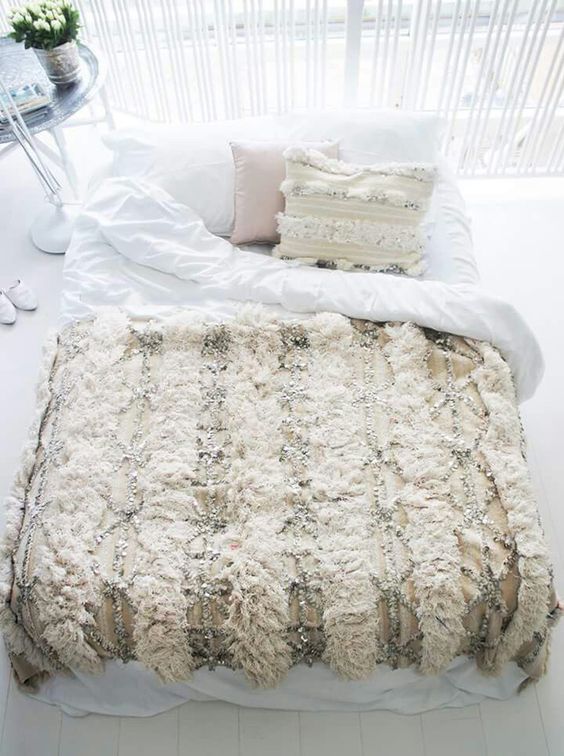 Elevate your home decor with our exquisite Moroccan blanket. Carefully handcrafted by skilled artisans in Morocco, this cotton blanket features intricate fringe details for a touch of elegance. Versatile and stylish, it can be used as a bedspread, throw, picnic rug, or camping essential. Made from 100% premium wool, this blanket offers both functionality and aesthetic appeal, creating cozy evenings and adding a unique charm to your living space. Experience the beauty of Moroccan craftsmanship with this exceptional piece.