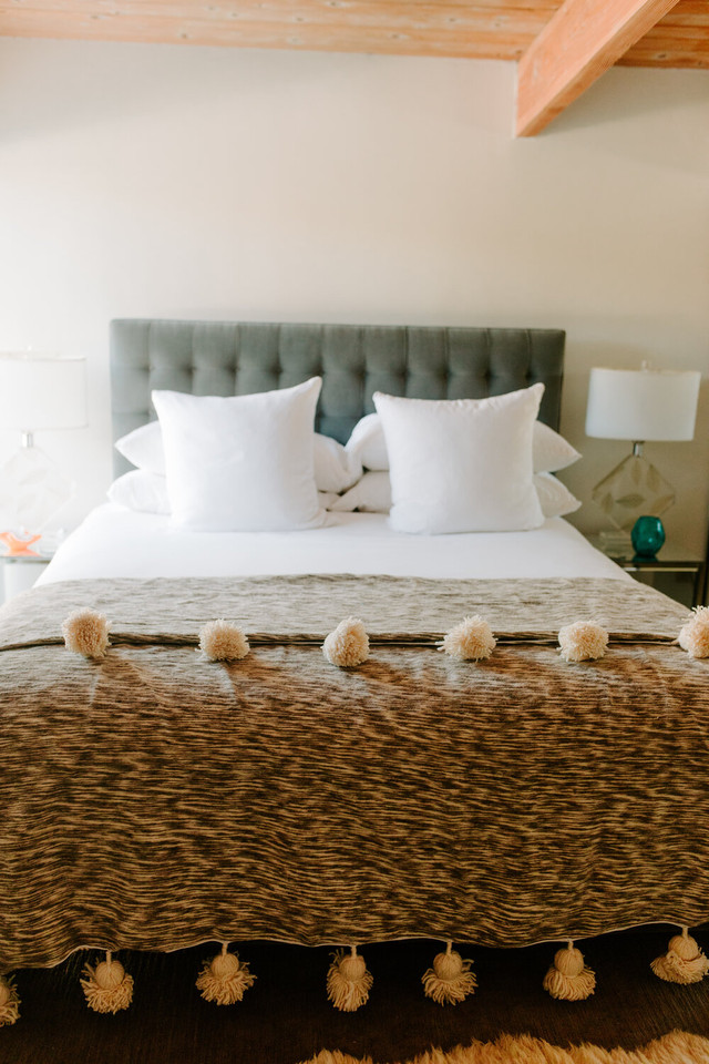 Add a touch of elegance to your space with our Handwoven Grey & White Moroccan Pom Pom Blanket. Crafted from 100% wool by talented local artisans, this cozy blanket features delicate pom poms for a stylish finish. Versatile in use, it can be draped over your bed, sofa, or taken outdoors for picnics and camping. Customizable in size, it serves as a throw, lap blanket, or decorative accent. Elevate your home decor with this labor of love from Morocco. Get yours today and experience unique comfort and style.