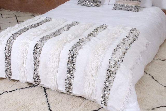 Elevate your space with our exquisite Handwoven Moroccan Wedding Blanket, meticulously crafted from 100% wool by skilled Moroccan artisans. This versatile blanket adds warmth and elegance to any room, serving as a beautiful bedspread, cozy throw, picnic rug, or essential camping companion. With customizable dimensions, it fits perfectly as a throw, lap blanket, or stylish decor piece, infusing your space with Moroccan charm. Experience the artistry and comfort of Moroccan craftsmanship with this timeless masterpiece that brings both luxury and functionality to your home ambiance.