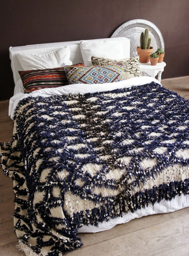 Indulge in luxury with the Navy Blue Glittery Moroccan Wedding Blanket. Skillfully hand-crafted in Morocco from wool, this vintage-inspired blanket is a versatile addition to any room. Use it as a bedspread, throw, picnic rug, or camping essential on cool nights. Customizable dimensions and made from 100% handwoven cotton, it’s ideal for adding coziness and style to your home decor. Bring a touch of Moroccan elegance to your space effortlessly with this authentic and luxurious blanket.