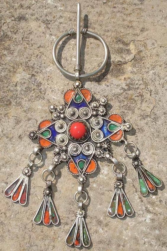 Adorn yourself with the exquisite Moroccan Berber Fibula brooch, showcasing a traditional beaded design and vibrant enamel finish. This vintage silver fibula from the 1900s features intricate charms, a symbol of Berber culture. Elevate your style with this unique accessory, a testament to Moroccan craftsmanship and tradition. Embrace the cultural heritage of Morocco with the exquisite Brooch 131, a handcrafted piece reflecting the artisanal mastery of Berber craftsmen. Elevate your look and showcase your appreciation for cultural craftsmanship with this timeless accessory of history and style.