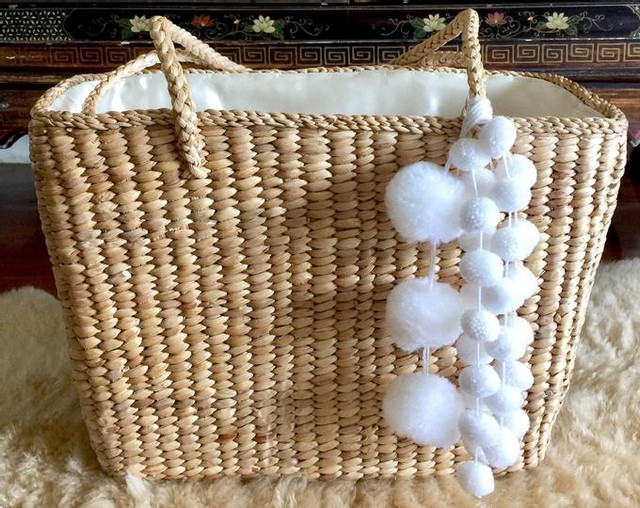 Elevate your home decor with our handcrafted Pom Pom Baskets from Morocco. Skillfully woven by local Berber women, these eco-friendly baskets feature delightful white pom poms that add a touch of whimsy to their stylish design. Perfect for beach outings, storage needs, or shopping trips, these versatile straw bags come in customizable dimensions to seamlessly fit into any space. Embrace sustainability and artisanal charm with these unique additions to your living space.