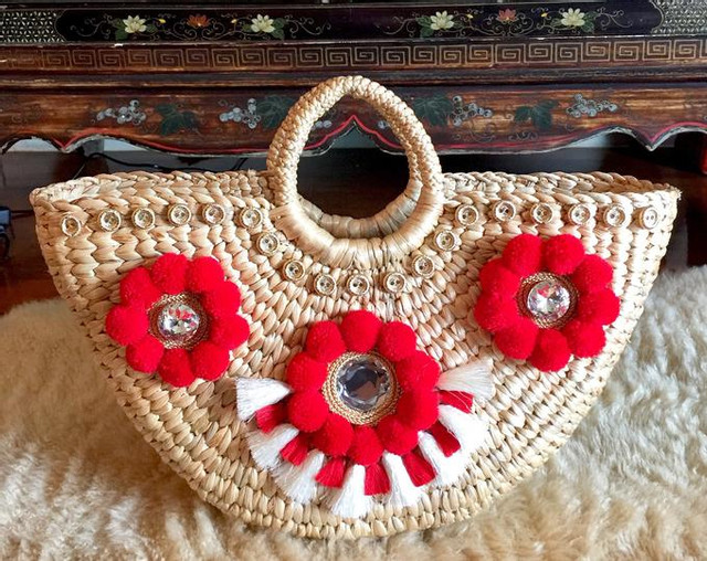 Elevate your space with the Semicircle Moroccan Pom Pom basket, handcrafted by Moroccan Berber women. Featuring charming flower-shaped red and white pom poms, this versatile basket serves as a beach companion, storage solution, shopping bag, or laundry hamper. Ethical and eco-friendly, it’s a sustainable alternative to plastic bags. Custom dimensions cater to varied needs and styles. Ideal for conscious consumers seeking unique and sustainable storage solutions.