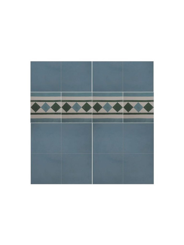 Enhance your living space with the captivating Moroccan Cement Border Tiles in Blue. A timeless addition inspired by Mediterranean aesthetics, these durable and water-resistant high-quality tiles feature a unique lozenge design. Suitable for indoor and outdoor application, these versatile cement tiles offer elegance and charm. Elevate your home with this functional and stylish choice.