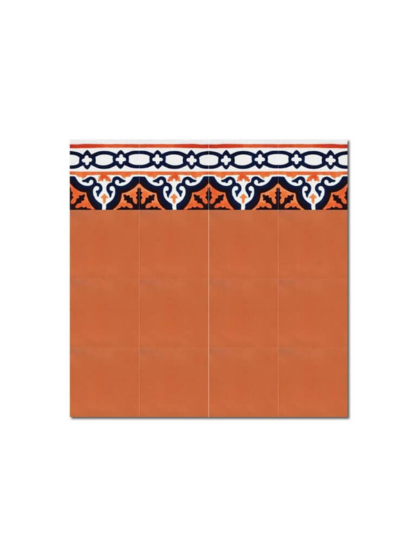 Enhance your living space with the Moroccan Cement Border in black and orange hues. Inspired by traditional Moroccan motifs, this high-quality cement tile combines durability and water resistance. Featuring stunning geometric shapes and arches, it’s perfect for kitchens, bathrooms, and bedrooms. Elevate your home decor with this stylish and versatile addition, whether on walls or floors. Purchase now to bring a touch of Moroccan charm into your home.