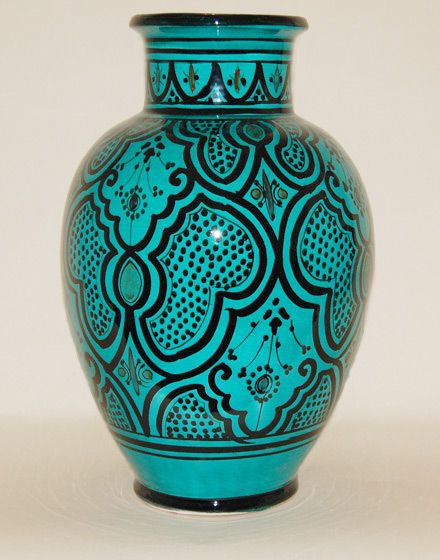 Infuse your space with the allure of Moroccan artistry with Vases 165. This vintage majolica pottery vase showcases a stunning hand-painted blue and black motif, adding a touch of elegance to any room. Crafted from top-quality red clay in Safi, this handmade masterpiece embodies the essence of Moroccan craftsmanship. Versatile and customizable, it serves as a perfect vessel for displaying flowers or a striking decor element. Elevate your home with this timeless piece of ceramic artistry.