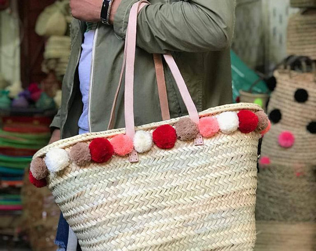 Elevate your style with our handmade Moroccan pom pom baskets, intricately crafted by talented Berber women. These eco-friendly baskets feature vibrant multi-colored pom poms, adding charm to your daily essentials. Perfect for the beach, shopping, storage, or laundry, these versatile creations are customizable to suit any style. Ethically made and perfect for conscious shoppers, these baskets offer a sustainable and chic alternative to plastic bags. Embrace uniqueness and functionality with our Moroccan Pom Pom Baskets, ideal for those who appreciate handcrafted treasures.
