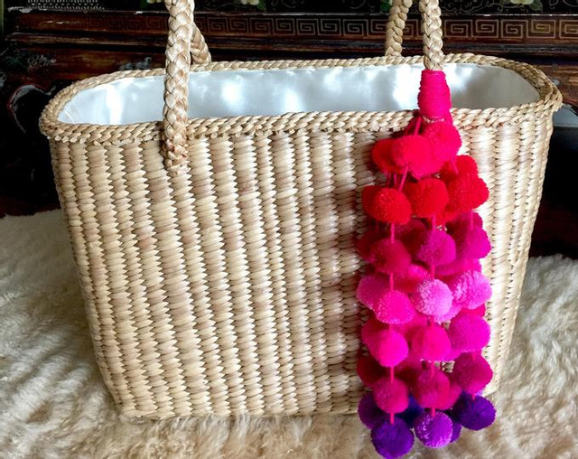 Elevate your style with our eco-friendly Pom Pom Baskets handcrafted by skilled Moroccan Berber artisans. Featuring a vibrant design with delightful red, pink, and purple pom poms, these versatile baskets are more than just a fashion statement. Use them as a beach bag, storage solution, or shopping tote, making them the perfect choice for eco-conscious individuals. Showcasing meticulous handwoven craftsmanship and supporting talented women artisans, these whimsical baskets provide a sustainable alternative to plastic bags. Add a touch of charm and functionality to your space with these chic and customizable baskets that effortlessly complement any style. Experience the enchanting allure of Moroccan craftsmanship with our Pom Pom Baskets, your go-to accessory for a trendy and ethical addition to your wardrobe.