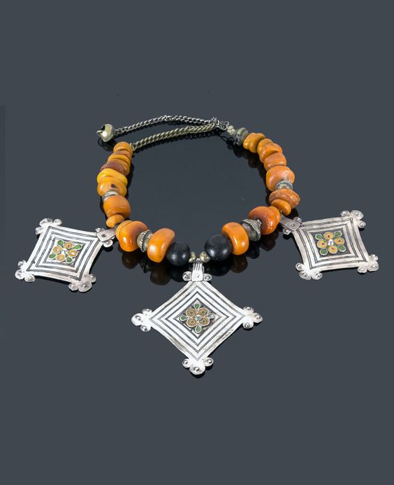 Add a touch of elegance to your jewelry collection with this exquisite handmade necklace inspired by Moroccan craftsmanship. Featuring intricate geometric designs, this piece effortlessly blends traditional Tuareg style with modern aesthetics. Elevate any outfit with this timeless treasure that showcases artistry and heritage. Experience the fusion of modern sophistication and traditional artistry in this one-of-a-kind accessory. Make a statement with this Tuareg Berber necklace, a masterpiece highlighting exceptional craftsmanship and elegant detailing. Don’t miss out on upgrading your style with this exceptional creation, now available for $0.00.