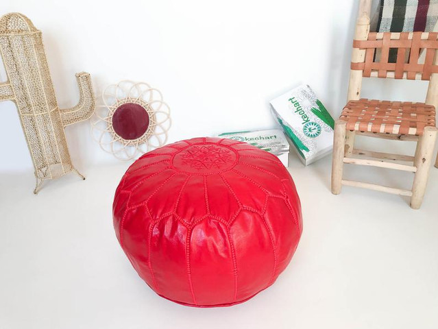 Enhance your living space with vibrant red Leather Poufs. Handmade from premium leather in Morocco, these poufs offer cozy seating and a warm ambiance. Customizable dimensions and easy filling make them stylish and practical. Add Moroccan charm to your decor for a unique seating option. Order now for a touch of elegance!
