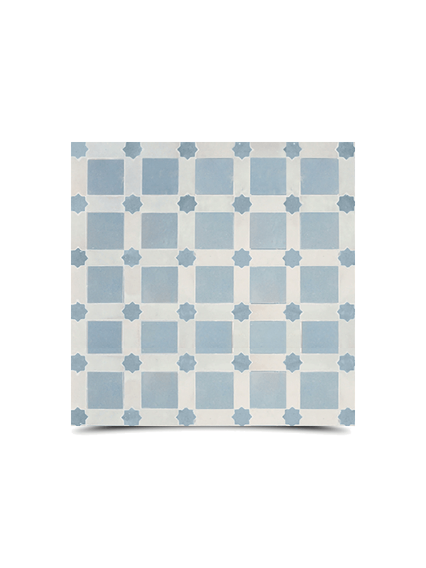 Enhance your living spaces with the allure of Moroccan mosaic patterns using this exquisite light blue tile. Adorned with intricate geometric shapes in blue and gray hues, complemented by charming star details, this tile is perfect for adding a touch of elegance to walls and floors. Crafted from premium materials and featuring a glazed finish with a range of color options, this mosaic tile offers exceptional durability and water resistance, making it an ideal choice for a variety of residential areas. Elevate your home decor with this chic and long-lasting centerpiece.