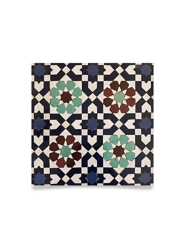 Moroccan Mosaic Blue Border Tile – Geometric Floral Design