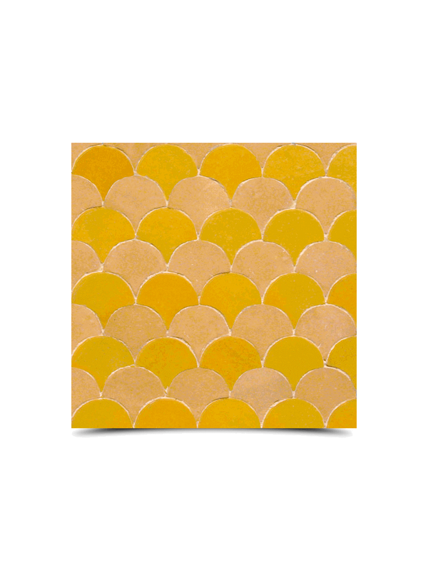 Enhance your living space with the exquisite Moroccan Mosaic Pattern. Handcrafted with durable quality and a blend of dandelion yellow and earthy beige tones, these tiles add vibrancy to any room. Their glazed finish ensures versatility for indoor and outdoor use, whether in kitchens, bathrooms, pool areas, or countertops. Elevate your decor with these resilient and stylish mosaic tiles today!