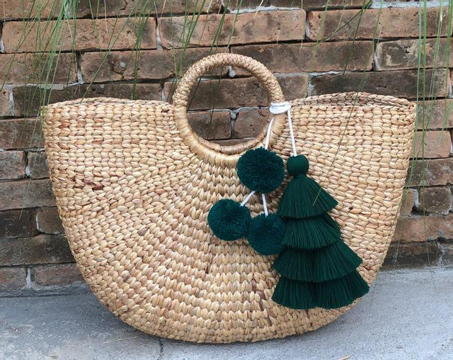 Elevate your style with our meticulously crafted handwoven Moroccan Pom Pom Baskets, featuring a chic emerald green pompom string for added flair. Serve multiple purposes as a beach tote, storage solution, shopping bag, or laundry basket with customizable dimensions to suit any need. These eco-friendly alternatives to plastic bags are ethically made by Berber women, showcasing attention to detail and sustainable practices. Experience the endless versatility of these exquisite baskets, now available at an unbeatable price.
