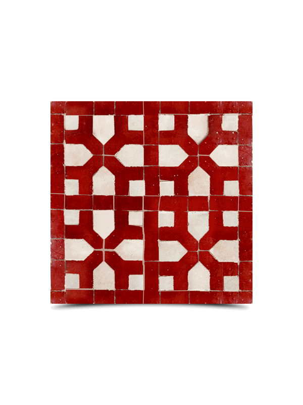 Transform your living space with the unparalleled charm of the Moroccan Mosaic Pattern Red & White tiles. These artisanal mosaic tiles, crafted in the classic Zellij technique, feature elaborate geometric patterns in a contemporary white hue set against a bold red backdrop. Elevate the aesthetic appeal of your home with the timeless allure of Moroccan design.