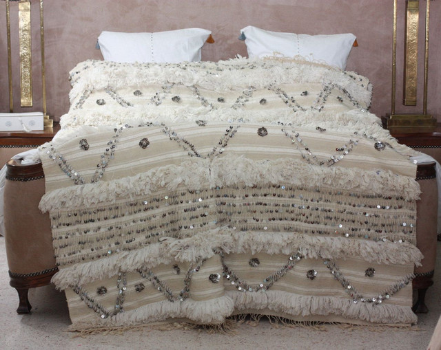 Experience the authentic allure of Moroccan artistry with Blanket 077, a handcrafted wool masterpiece embodying cultural elegance and coziness. Custom-sized and intricately woven from 100% cotton, this versatile blanket seamlessly combines style and comfort, perfect for enhancing your living space with a touch of Moroccan heritage. Use it as a bedspread, throw blanket, or decorative accent to add warmth and charm to any room. Personalize your experience with this durable and comfortable masterpiece, ideal for all seasons, from cozy nights to outdoor picnics. Embrace the enchanting blend of beauty and functionality with Blanket 077 – a timeless piece that elevates your home décor effortlessly.