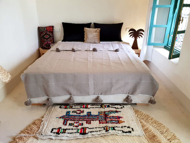 Experience the timeless elegance and comfort of the Natural Brown Moroccan Pom Pom Blanket. Hand-crafted by skilled artisans in Morocco from 100% cotton, this versatile piece is adorned with charming pom poms on two sides, adding a touch of style to any space. Whether used as a bedspread, sofa throw, picnic rug, or essential for chilly camping nights, this blanket showcases the enchanting craftsmanship of Morocco. Elevate your home with this unique blend of warmth and sophistication.