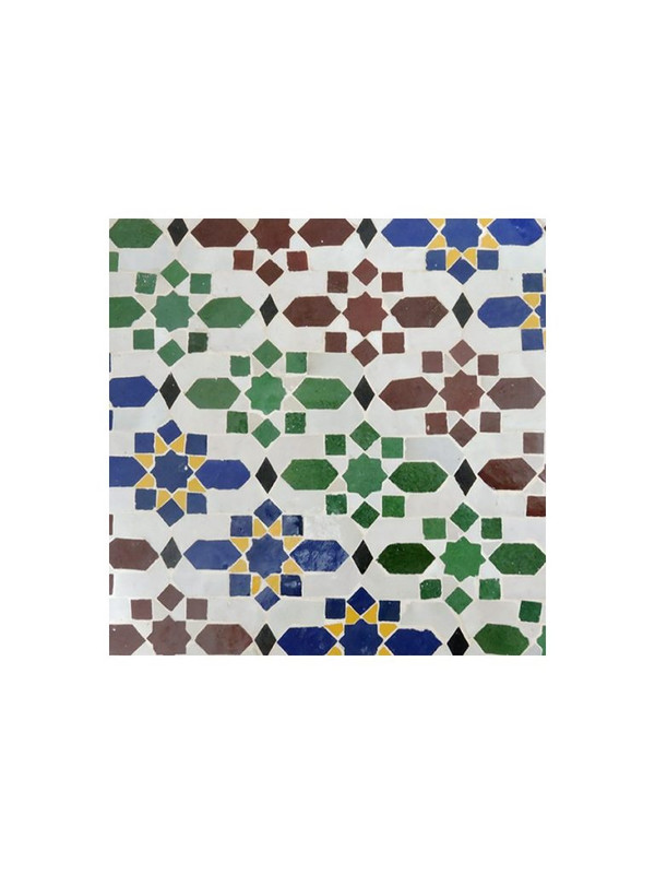 Enhance your living space with the exotic allure of the Moroccan Mosaic Pattern Multi Colors. This intricate mosaic showcases vibrant red, blue, and green star shapes harmoniously paired with white and yellow arches. Ideal for both indoor and outdoor applications, this tile boasts a durable design with a glazed finish, making it perfect for kitchens, bathrooms, pools, and more. Elevate your decor with this top-tier, water-resistant mosaic tile that adds a touch of elegance and sophistication to any environment.