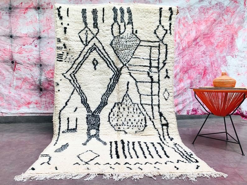 Enhance your living space with a vintage Moroccan Beni Ourain Rug featuring distinctive geometric patterns and abstract tribal symbols in black on cream. Handcrafted from 100% natural sheep’s wool by skilled artisans, this rug offers a soft, warm, and premium quality finish. Customizable dimensions ensure a perfect fit for your space, adding an air of authenticity and sophistication to your decor. Elevate your home with this exquisite piece that combines traditional Moroccan charm with contemporary style. Add a touch of elegance and comfort to your living space with this unique Beni Ourain Rug.